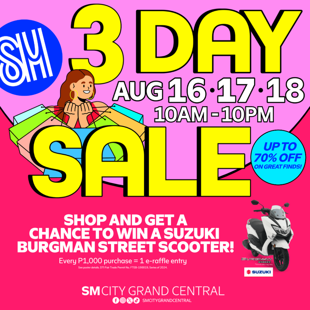 Mark your calendars and get ready to snag the best deals, enjoy amazing shopping rewards, and bring home loads of goodies for you and your family. The shopping event of the year is happening only at SM City Grand Central’s 3-Day Sale!
